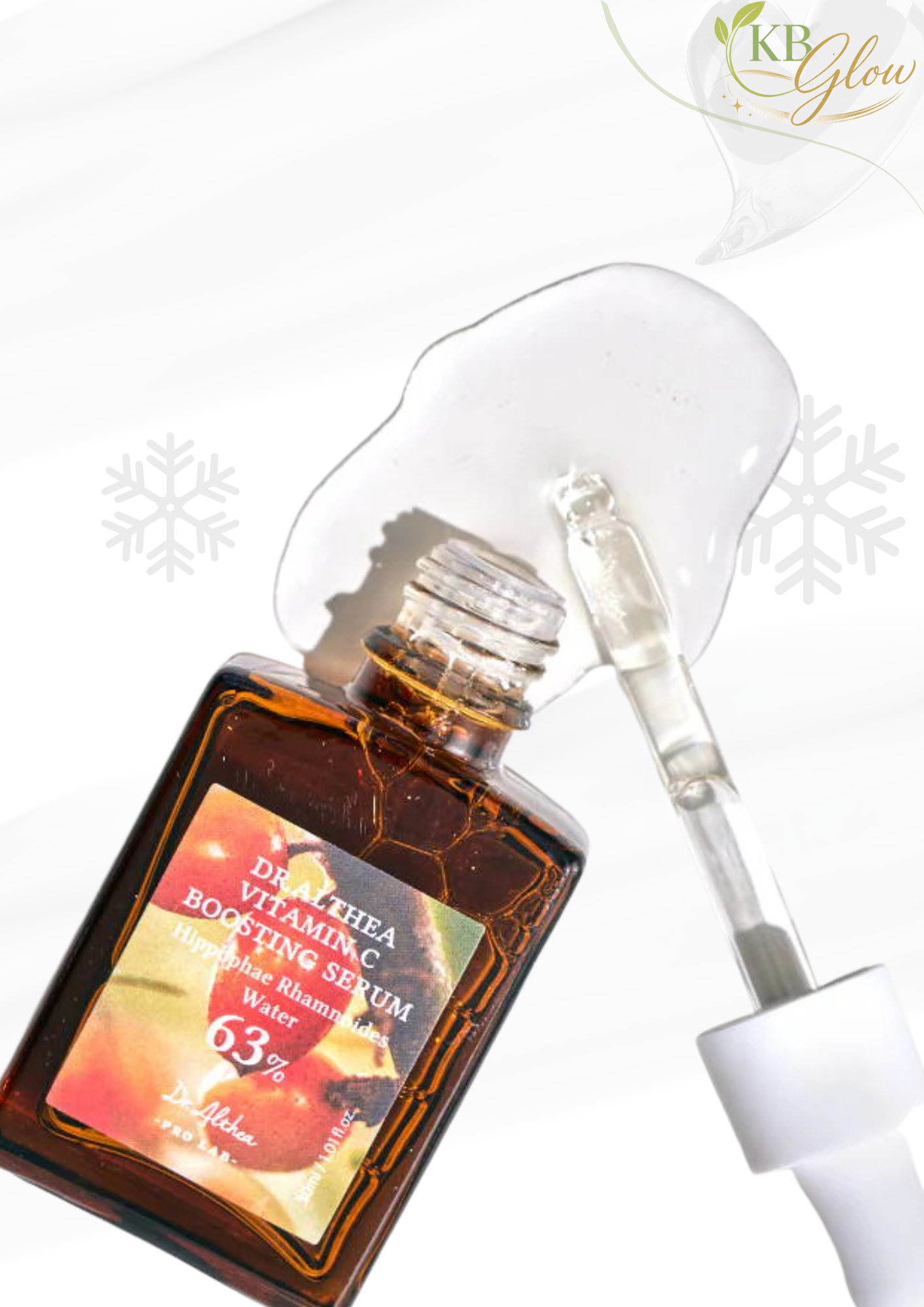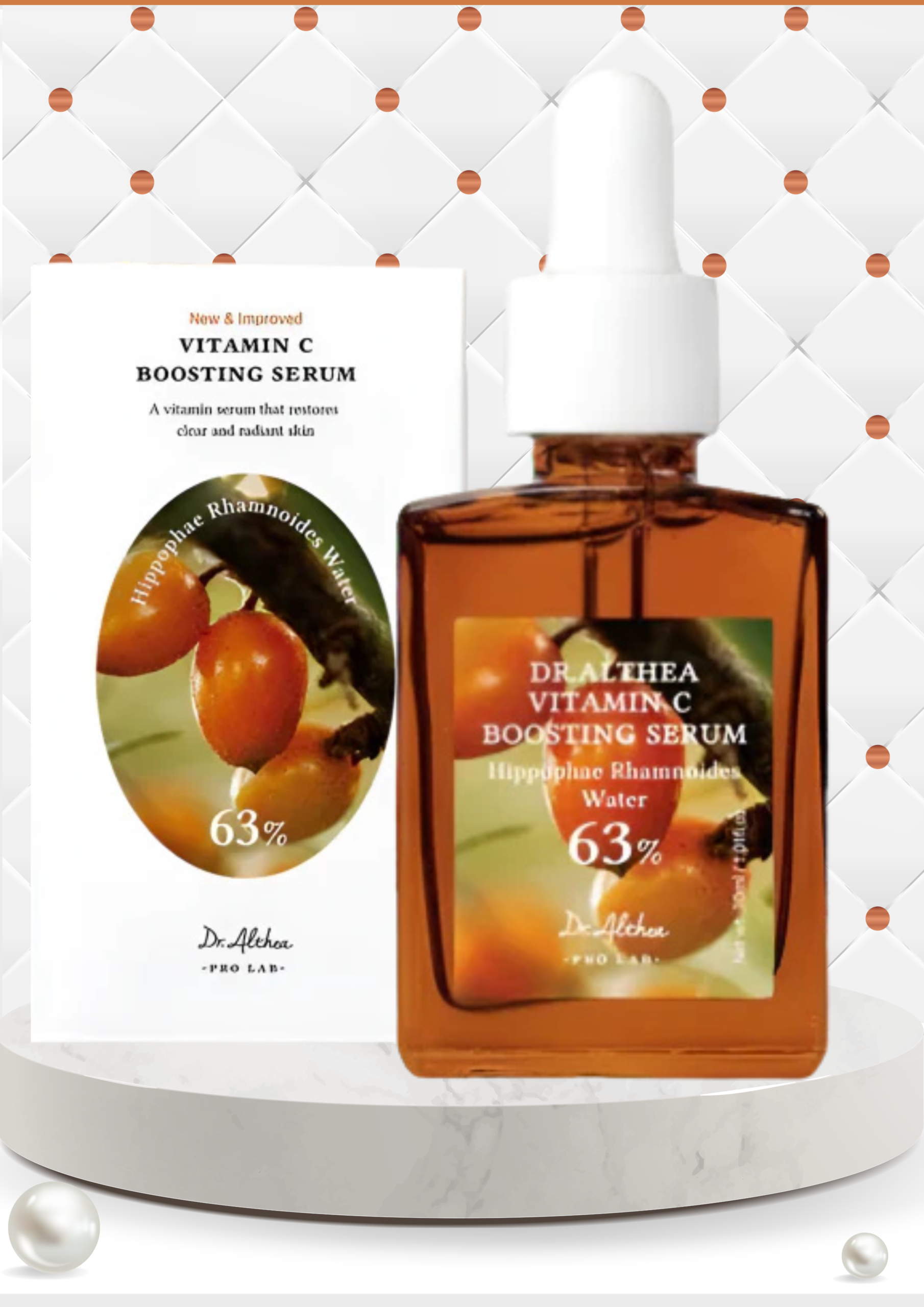 Revitalise ton teint avec le Vitamin C Boosting Serum Dr. Althea, une formule vegan puissante conçue pour éclaircir et restaurer l’éclat naturel de ta peau. Enrichi d’un complexe Vita Boosting à 20 %, ce sérum mélange 9 types de vitamines et 3,2 fois plus de vitamine C que dans un citron, provenant d’extrait de fruit Hippophae Rhamnoides pour combattre efficacement l’hyperpigmentation et unifier le teint.